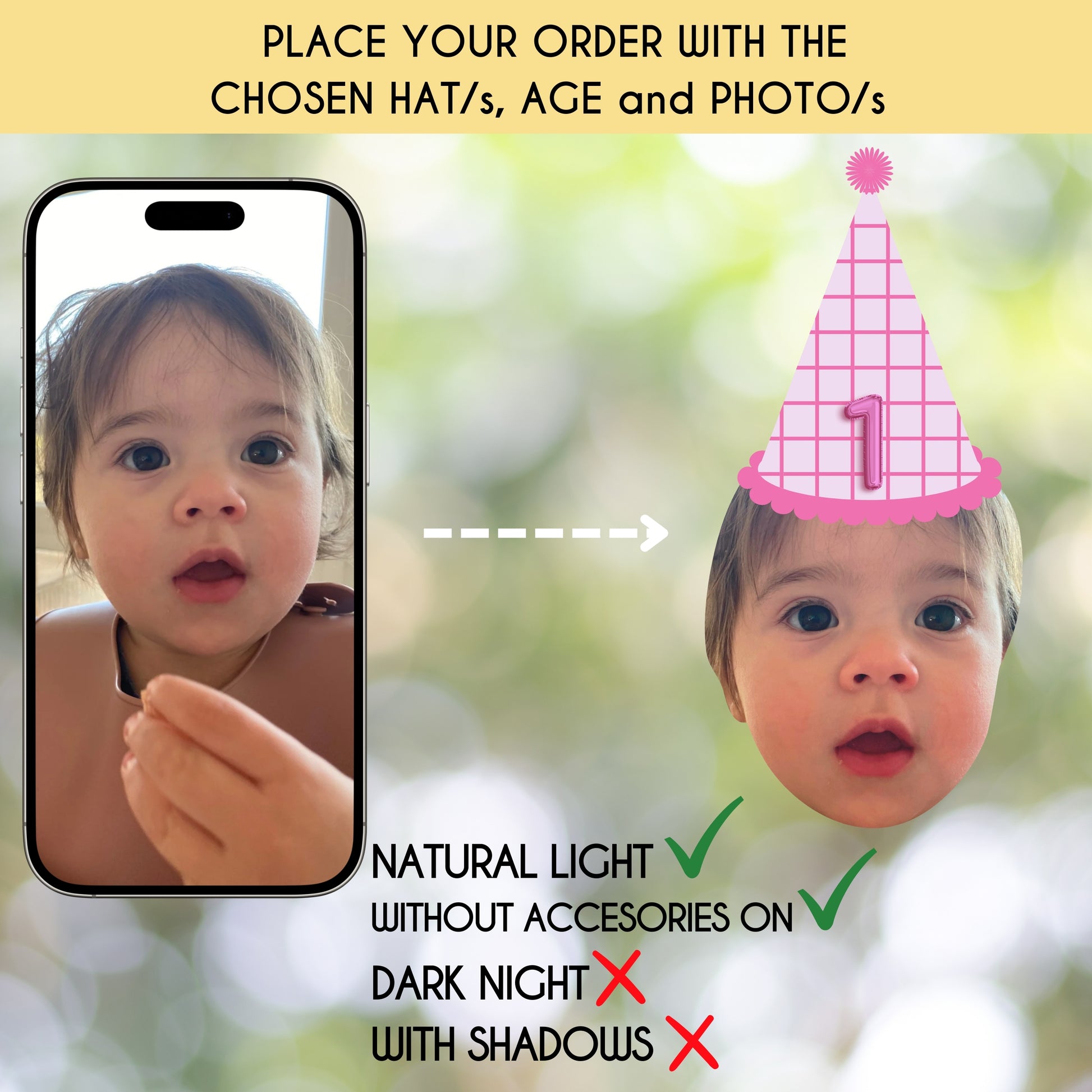 Banner mit Mädchen- oder Jungengesichtern, Cupcake-Topper und Konfetti – ideal für jedes Alter!